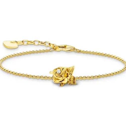 Im Mittelpunkt des Armbands steht eine dramatisch gestaltete Rose in 3D-Optik mit fein gravierten Blättern. Die Blüte ist mit einem funkelnden, weißen Zirkonia besetzt.
