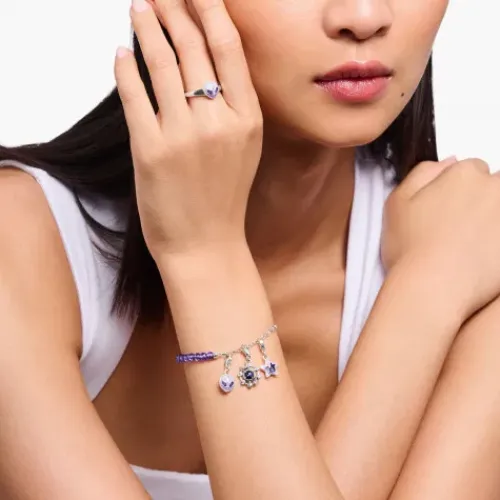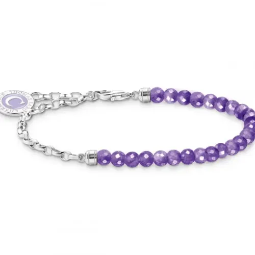 Charm-Carrier: Eine spannende Optik entsteht durch die Kombination eines Gliederarmbands aus hochwertigem 925er Sterlingsilber und eines Beads-Armbands aus imitiertem, violettem Amethyst. Eine runde THOMAS SABO Charm Club Charmista Coin mit violetter Kaltemaille ziert das Ende des …Charm-Armbands.