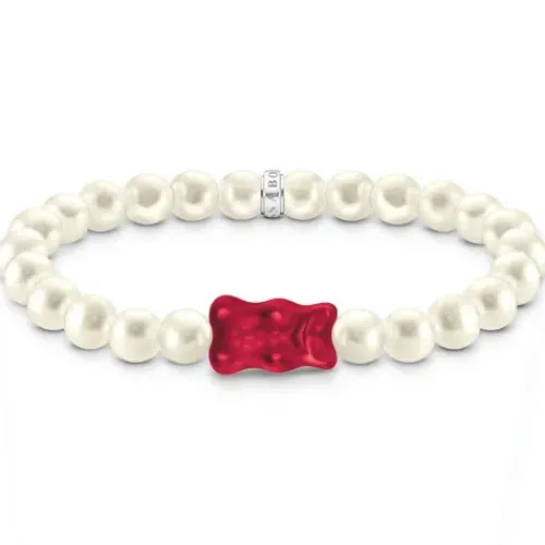 Süßes für dein Handgelenk – aber Vorsicht: bitte nicht naschen ;-). Ein täuschend echt gestalteter HARIBO Goldbär in Rot schmückt dieses elegante Perlenarmband. Er ist aus leicht satiniertem Kristallglas in einer bruchsicheren, hochwertigen Qualität gefertigt und auf der Rückseite mit …THOMAS SABO x HARIBO graviert. Mit einem Augenzwinkern verleiht er dem Armbandklassiker einen niedlichen Twist und weckt Erinnerungen an die Kindheit. Bist auch du ein Fan der beliebten Gummibärchen? Dann trage das Armband aus Süßwasserzuchtperlen als Statement und kombiniere es mit weiteren Schmuckstücken aus der THOMAS SABO x HARIBO Kollektion.