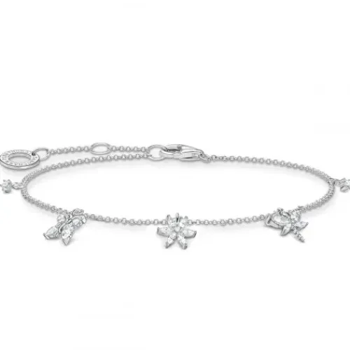 Leichtigkeit, Freiheit, positive Energie – diese Armkette ist absolut ausdrucksstark. Ihr Highlight sind die verschiedenen Anhänger: ein Schmetterling, eine Blüte, eine Libelle und runde Schmucksteine. Die Motive sind kunstvoll gearbeitet, funkeln im Licht und schwingen verspielt am …Handgelenk, wenn der Arm bewegt wird. So bereitet das Armband mit Anhängern pure Glücksmomente – egal, ob es als Geschenk für sich selbst oder den Lieblingsmenschen gedacht ist. Es lässt sich auf verschiedenen Längen anlegen und solo tragen oder easy mit weiteren THOMAS SABO Armkettchen kombinieren.