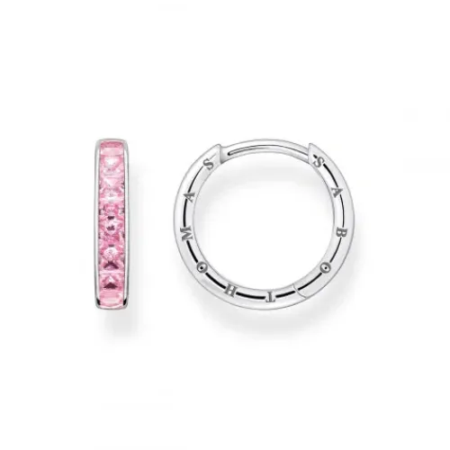 Zeitlose Eleganz: Aus 925er Sterlingsilber hochwertig gefertigt, sind die Creolen mit funkelnden Zirkonia-Steinen von Hand besetzt. Die Steine im edlen Prinzessschliff erstrahlen in einem glamourösen Pinkton. Die offene Kanalfassung macht ihr Farbenspiel bei Lichteinfall besonders intensiv. An …den Seiten ist der Ohrschmuck mit THOMAS SABO Gravur verziert.