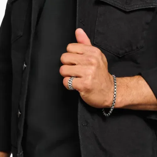 Minimalistisch und zugleich ein Hingucker: Dieser breite Bandring besitzt ein zeitloses Design, das sich aus einzelnen Kettengliedern zusammensetzt. Inspiriert ist es von der beliebten Panzerkette. Der Ring besteht aus recyceltem und geschwärztem Silber und ist in vielen verschiedenen Größen …erhältlich. Als Unisex-Design ist er ein hervorragender Freundschafts- und Partnerring.