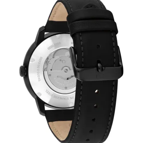 Die Tommy Hilfiger Henry verbindet klassischen Stil mit beeindruckender Technik. Diese Herrenuhr besticht durch ihr poliertes Edelstahlgehäuse und ein schwarzes Zifferblatt, das mit klarer Struktur und raffinierten …Details überzeugt. Ein faszinierender Ausschnitt gewährt einen exklusiven Blick auf das präzise Automatikwerk und macht die Uhr zu einem echten technischen und optischen Highlight. Das schwarze Lederarmband sorgt für höchsten Tragekomfort und unterstreicht das elegante Design. Mit dem Automatikwerk benötigen Sie keine Batterie – ein echtes Zeichen für technische Raffinesse und Langlebigkeit.