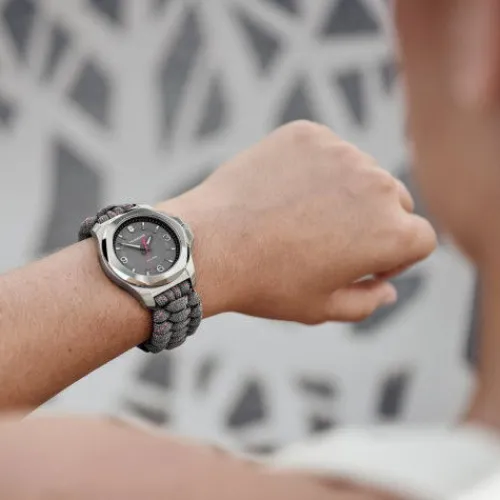 Eine leichte, souveräne Uhr, die jedes Abenteuer mitmacht. Die I.N.O.X. V: Fortschrittlich, funktional und formvollendet. Ein Schweizer Zeitmesser, der neue Massstäbe im Design von Damenuhren setzt. Basierend auf dem ikonischen Design der originalen I.N.O.X. V für die anspruchsvolle …Weltenbummlerin neu aufgelegt. Jetzt um 32% leichter und um 33% schlanker, mit einem superweichen Paracord-Armband, das ein neues Verschlusssystem mit zwei verschiedenen, austauschbaren Grössenverlängerungen bietet.
